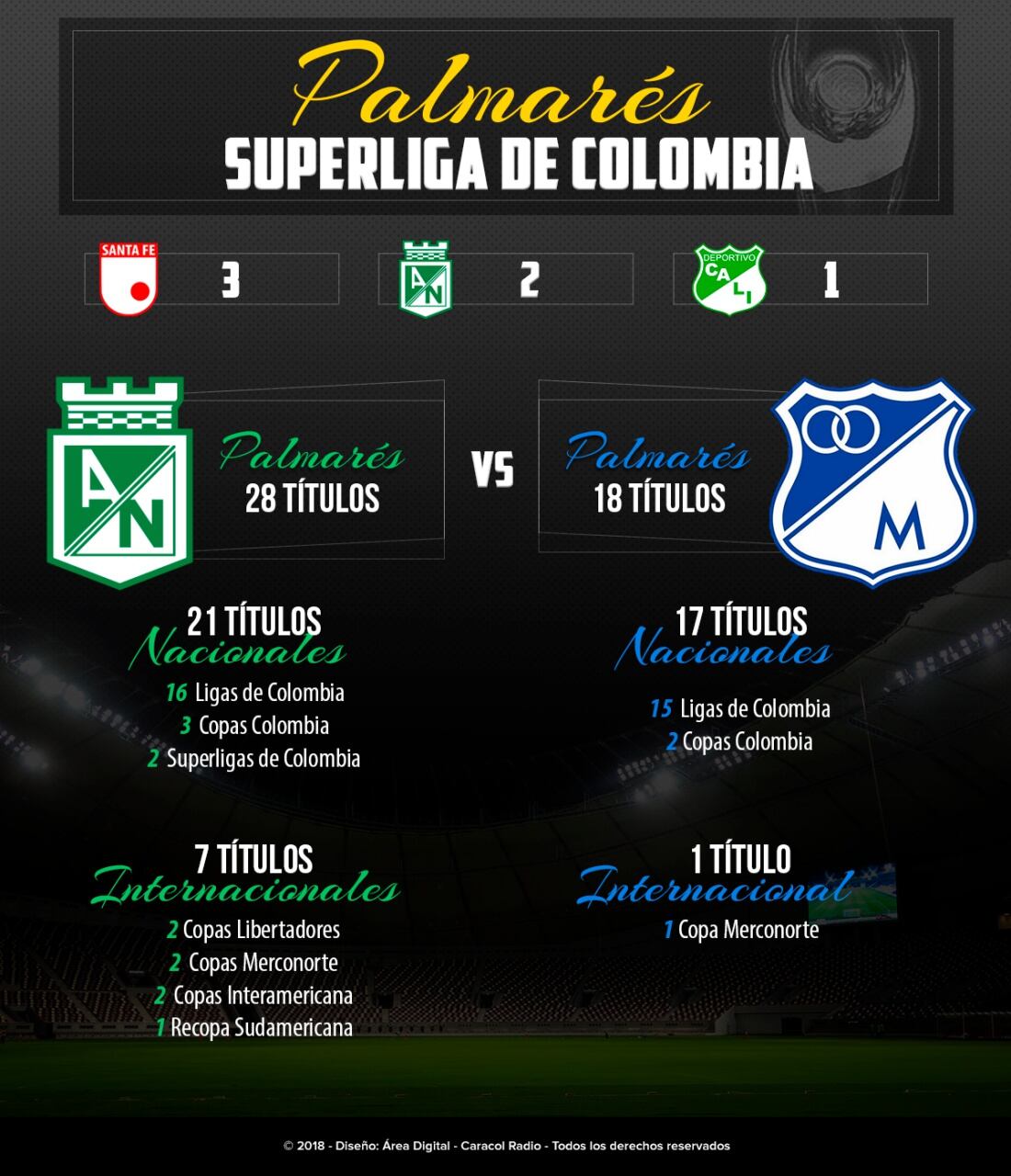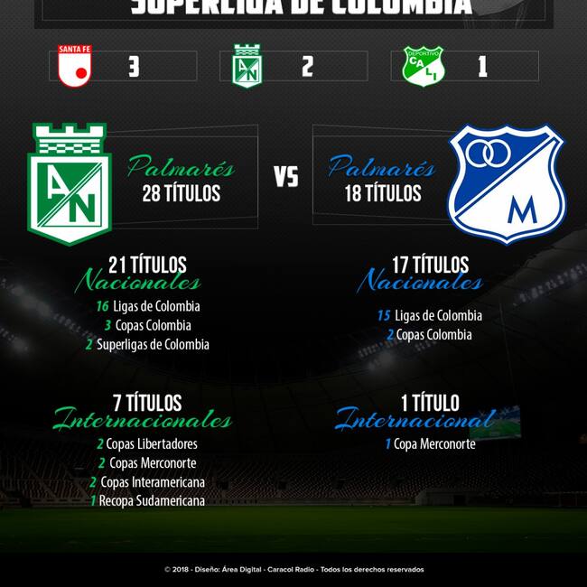 Nacional y Millonarios, un palmarés cargado de títulos