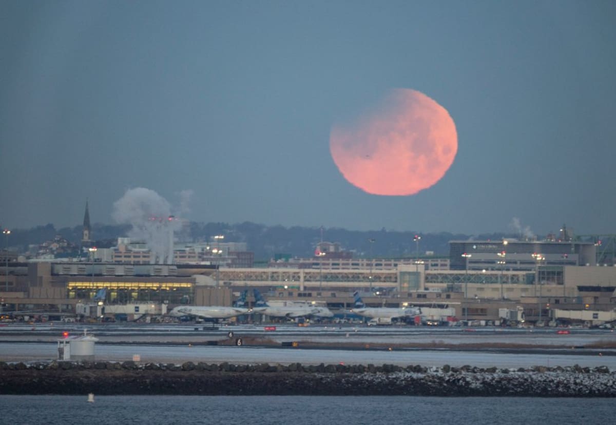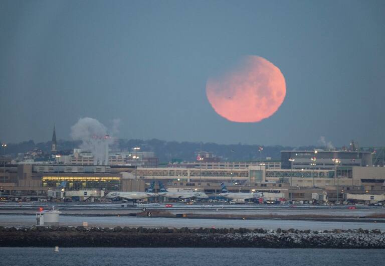 La llamada superluna azul, en lo alto del cielo de la ciudad de Boston, Estados Unidos