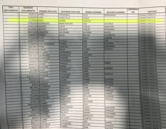 La lista incluyó el nombre de Ernesto Daza Sierra de Cambio Radical, inhabilitado por la Procuraduría. De acuerdo con el ministro Rivera, “la información fue entregada a los partidos a tiempo”, sin embargo, pese a las advertencias se inscribió en los listados oficiales para Congreso en el proceso que se surtió el mes de diciembre.