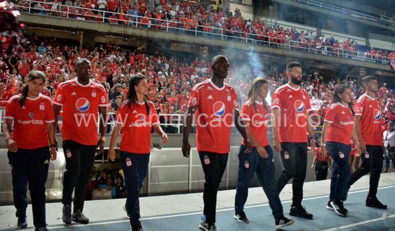 América de Cali presentó en el estadio Pascual Guerrero su nueva camiseta para el 2018. Se destaca en la indumentaria un rojo más vivo.