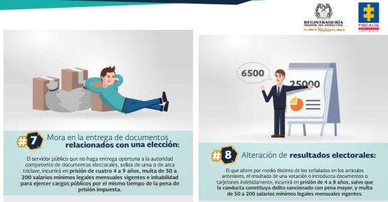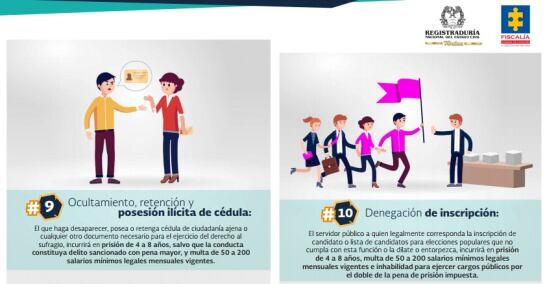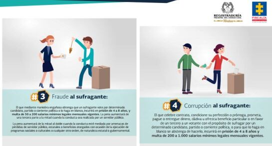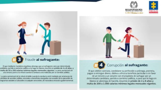 Son 16 nuevos delitos que Fiscalía y Registraduría intentan divulgar para que votantes, candidatos y partidos políticos se prevengan en cometer.