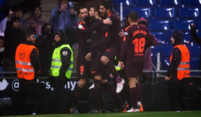 En el minuto 82, y como acción reactiva al modo de celebración del gol del FC Barcelona en el minuto 81, por parte del jugador del equipo visitante, Gerard Piqué (quien se acercó corriendo a celebrarlo a la zona más cercana a la grada donde se ubicaban aficionados locales, realizando un gesto hacia el público colocándose su dedo índice sobre su boca, en señal de silencio) unos 450 aficionados locales, ubicados en Cornellá, sectores 109 y 110, e integrantes de la grada de animación denominada "Grada Canito", entonan de manera coral y coordinada durante aproximadamente 12 segundos, "Piqué cabrón, Shakira tiene rabo, tu hijo es de Wakaso y tu eres maricón", en referencia al jugador azulgrana.. Dicho cántico fue secundado por algunos otros aficionados desde diferentes sectores, sin poder determinar el número, subraya la nota de la Liga.