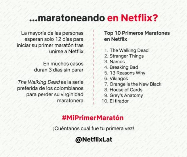 A continuación el top 10 de los “primeros maratones” de los colombianos en Netflix
