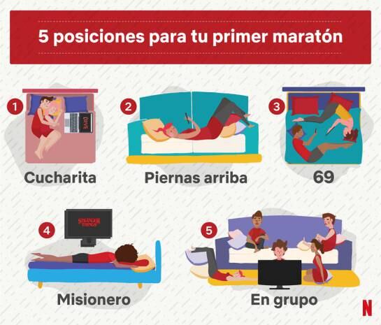 Además, la plataforma de streaming reveló las mejores posiciones para hacer una maratón.