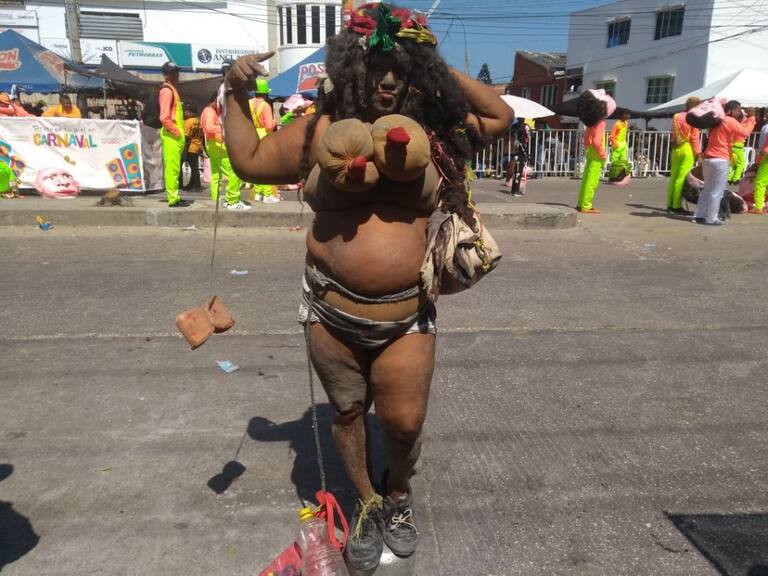 Por su parte, el Rey Momo, Ricardo Sierra, luce un vestido haciendo un reconocimiento a la danza del Garabato en donde se presenta la lucha entre la vida y la muerte.