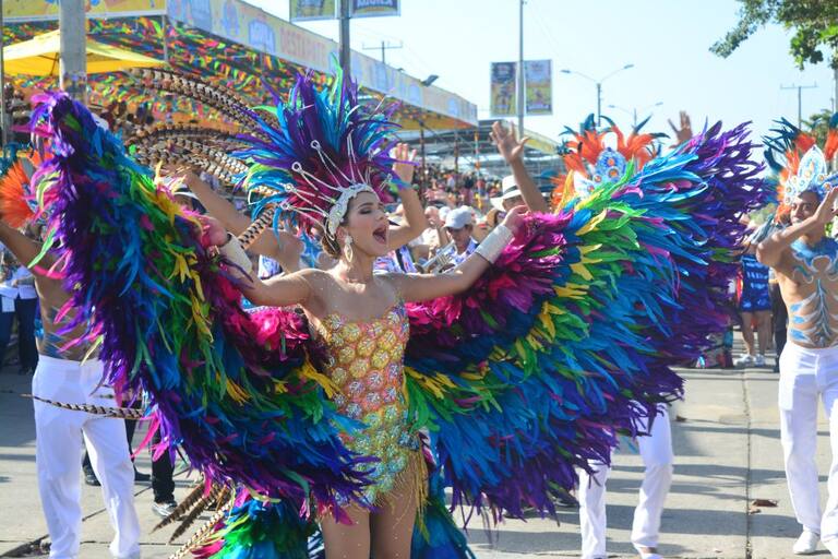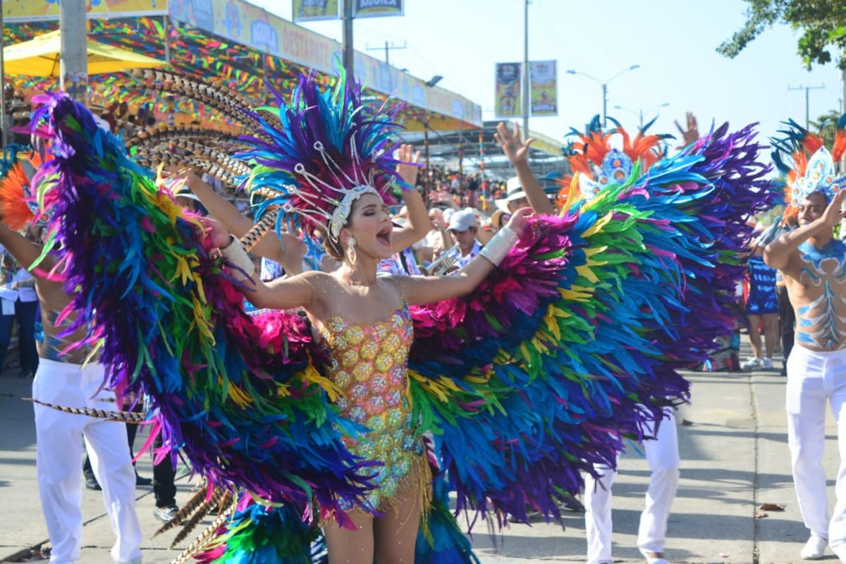 Haciendo alusión a las aves, la reina del Carnaval Valeria Abuchaibe lució un hermoso diseño denominado “Vuelo de Fantasía”.