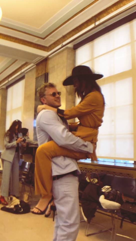 Así que” subtitulo la primer foto del ‘stories’ Instagram, foto donde encuentra en un tribunal de New York acompañada del actor Josh Ostrovsky y el cineasta Josh Sadfie, quienes se presume fueron los testigos de la boda; continuo su historia con una foto de su mascota “tengo una sorpresa” y finalizó la noticia con una foto junto a su nuevo esposo diciendo “me casé hoy