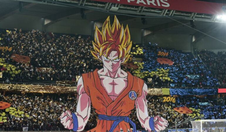 El protagonista de Dragon Ball, anime japonés que se empezó a emitir en televisión desde 1986, fue mostrado en forma de tifo por los hinchas del PSG. La razón del mosaico mostrado por los aficionados fue la analogía entre el personaje, quien en la serie animada busca constantemente las 'siete esferas del dragón', y el equipo francés, escuadra que espera ganar este año su séptima Ligue 1.