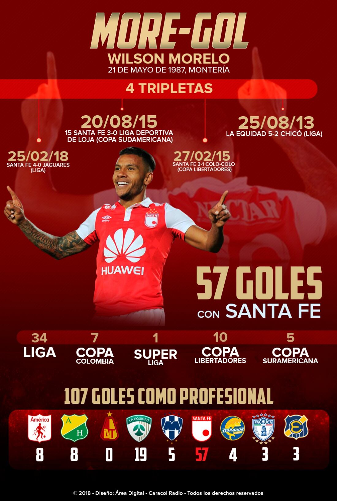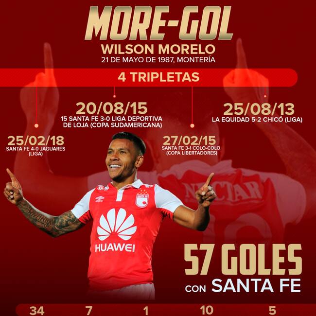 El delantero ya suma 57 goles con Independiente Santa Fe.