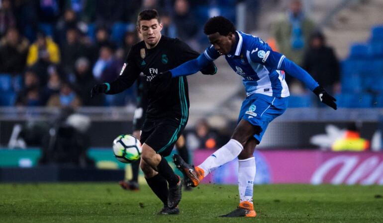 El delantero catalán tenía hambre de gol y en la siguiente jugada vio puerta, aunque el colegiado lo anuló por fuera de juego, protestado por los locales. El acelerón blanquiazul frenó ligeramente el acoso blanco, a menos revoluciones antes del descanso, pese a los destellos de calidad de Marco Asensio.