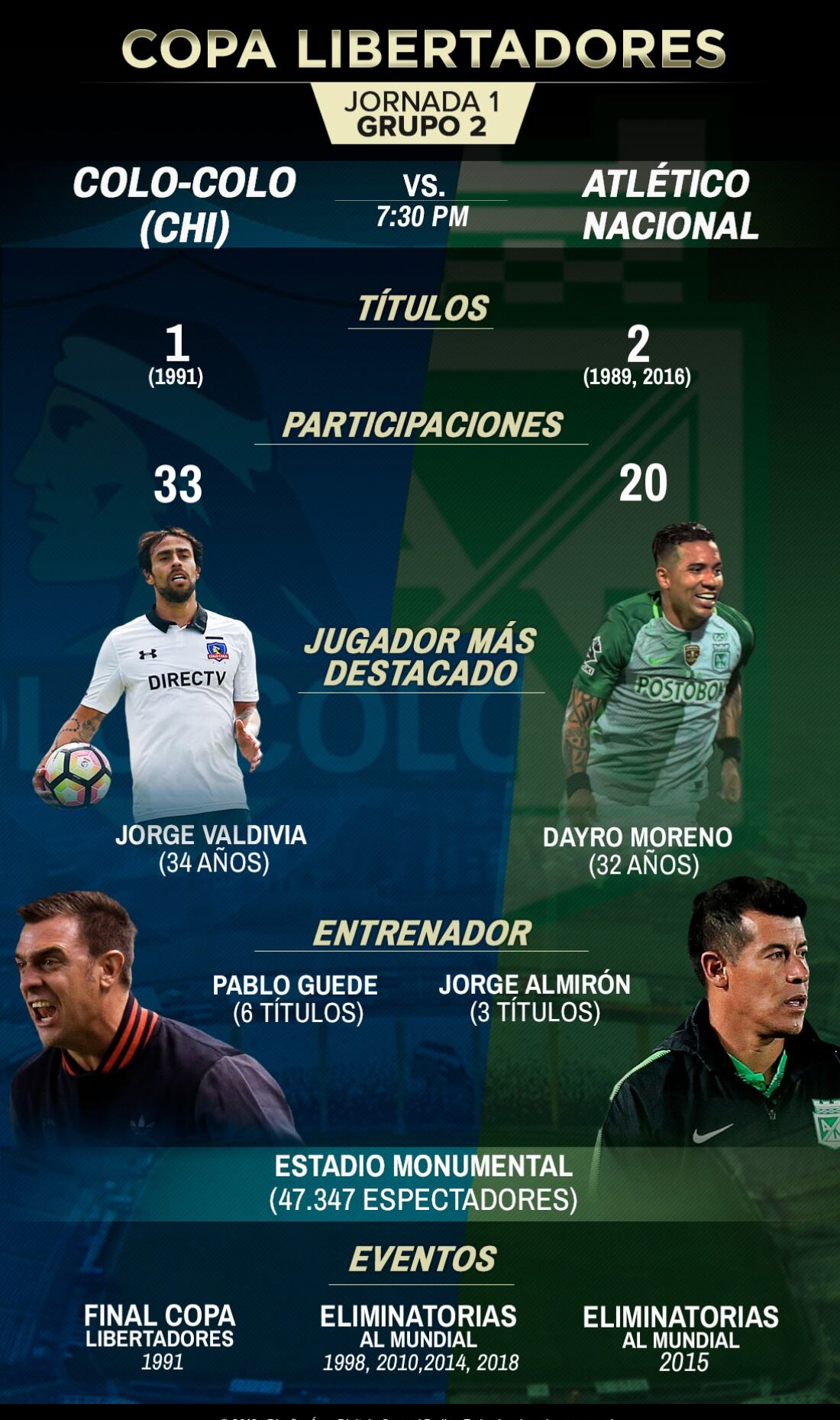 Colo-Colo Vs. Atlético Nacional, dos grandes del continente
