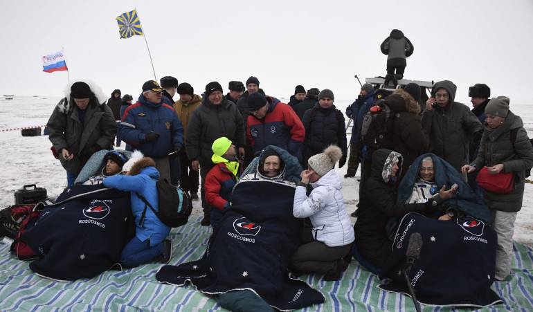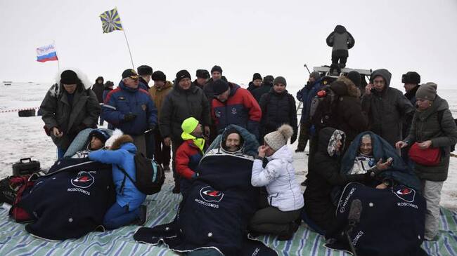 2 astronautas estadounidenses y 1 astronauta ruso aterrizaron en Kazajistán.