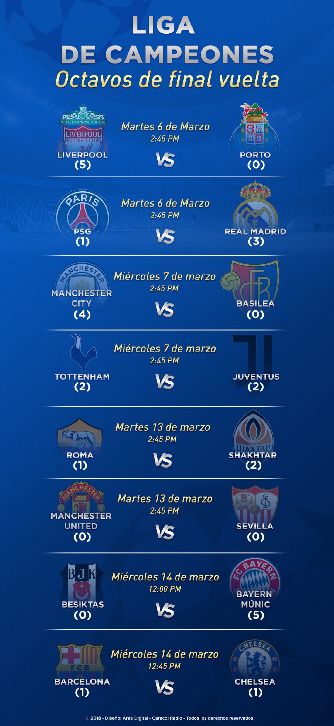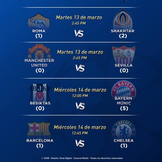 Prográmese con los juegos de vuelta de los octavos de final de la Champions