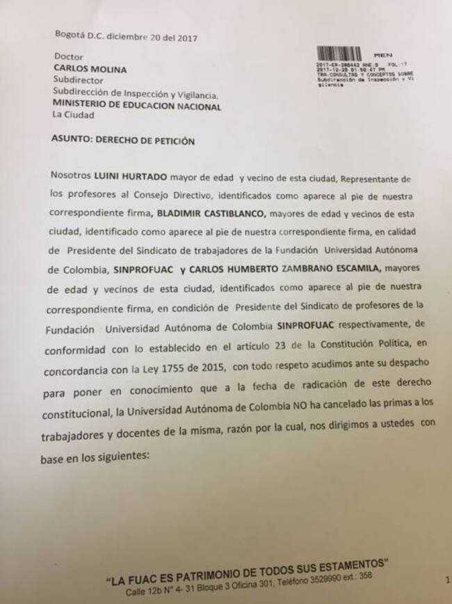 La situación se habría comenzado a evidenciar por algunos retrasos, según ellos, como el pago de la prima de fin de año a docentes y otros trabajadores, hechos que fueron puestos en conocimiento del Ministerio de Educación.
