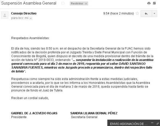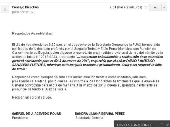 Por ahora, la molestia crece porque para este sábado 03 de marzo, estaba programa la elección de la Asamblea General para la designación de presidente y vicepresidente. “Entendemos que es para nombrar un presidente que les permita seguir controlando los recursos", aseguraron desde el consejo de estudiantes.