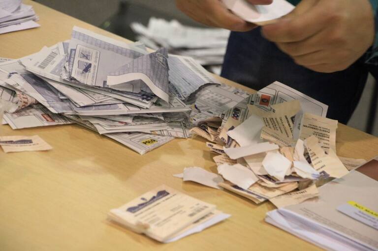 Después de que votaran las personas que se encontrabana en la fila, se inició con la destrucción del material no usado.