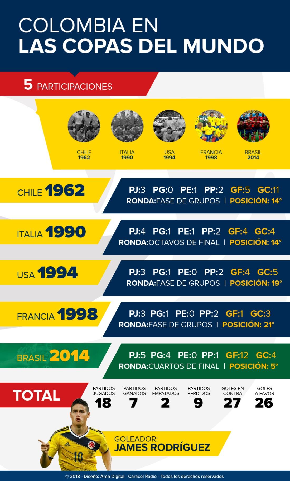 La historia de Colombia en los Mundiales a 100 días del debut con Japón