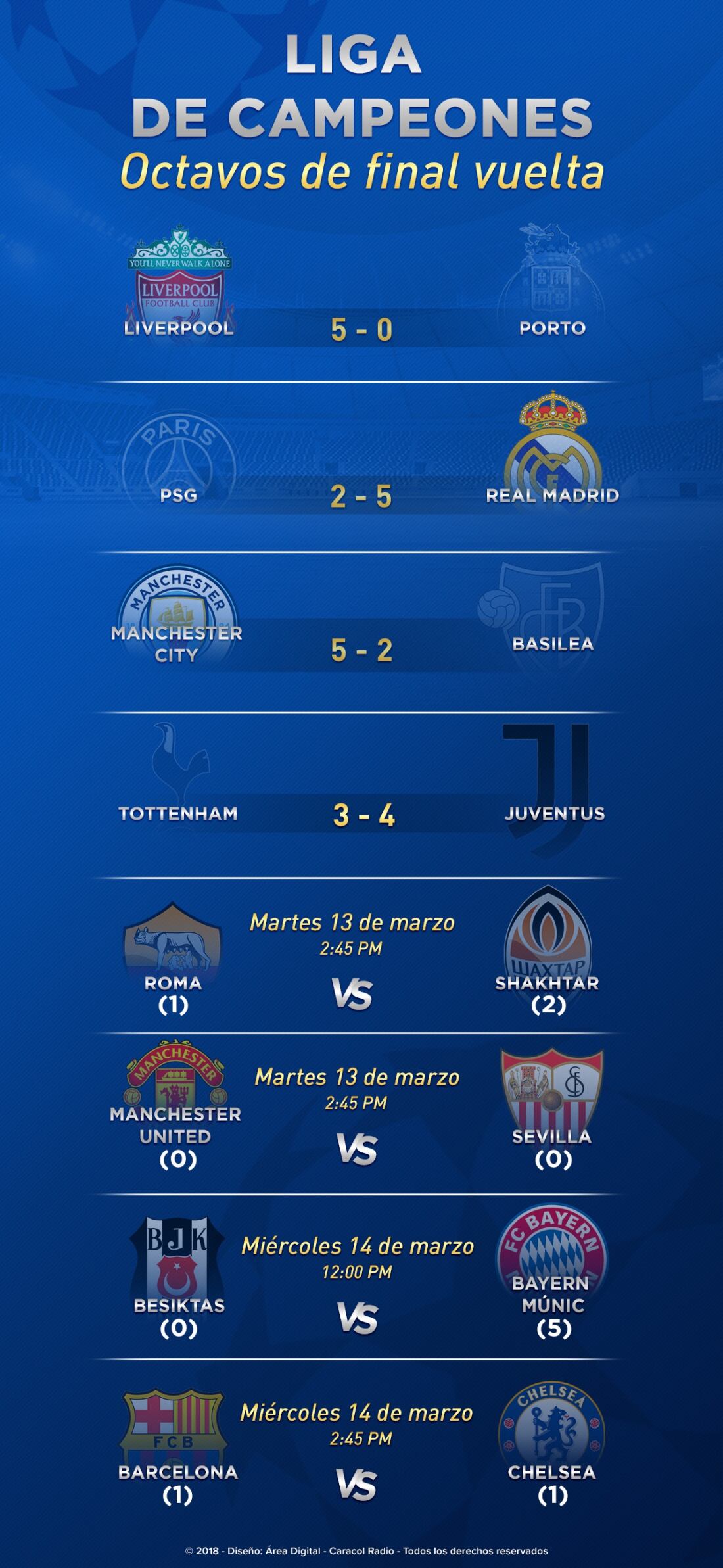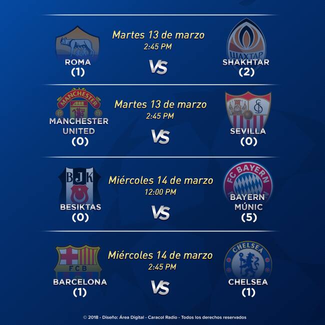 Prográmese con los juegos de vuelta en los octavos de final de la Champions