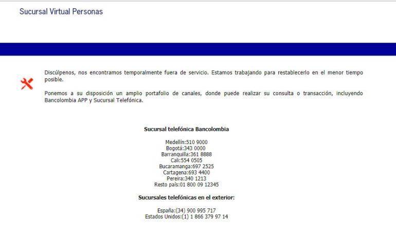 Bancolombia reporta problemas en su plataforma para atender a clientes