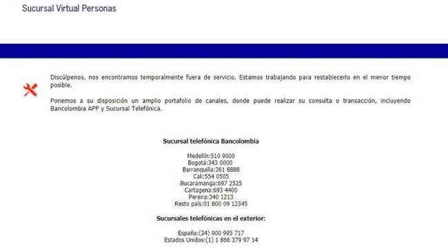 Bancolombia reveló que, a través de sus equipos de asesores, está redireccionando a los canales transaccionales que estén disponibles en el momento de la dificultad que el cliente reporte.