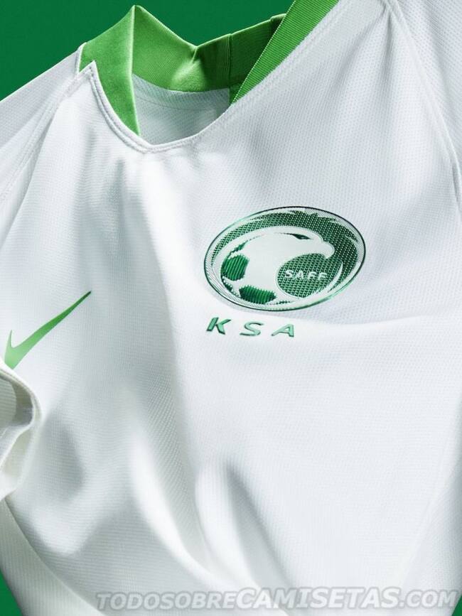 Foto 2 de 30Arabia Saudita será vestida por la empresa norteamericana Nike. En esta edición se usará el nuevo escudo, mientras que el logo viejo de la federación de fútbol de Arabia Saudita se ubicará en la parte de atrás del cuello.