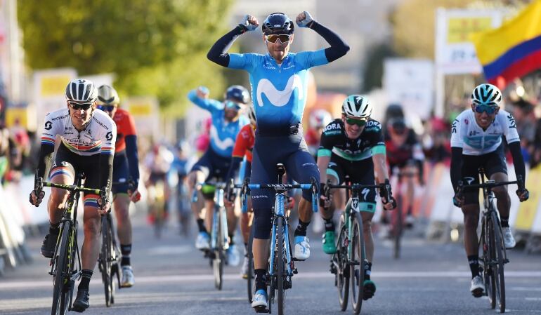 El veterano ciclista murciano, de 37 años, culminó con triunfo el gran trabajo del Movistar, que imprimió un ritmo muy duro en los últimos 50 kilómetros de la etapa, en los que el viento soplaba muy fuerte.