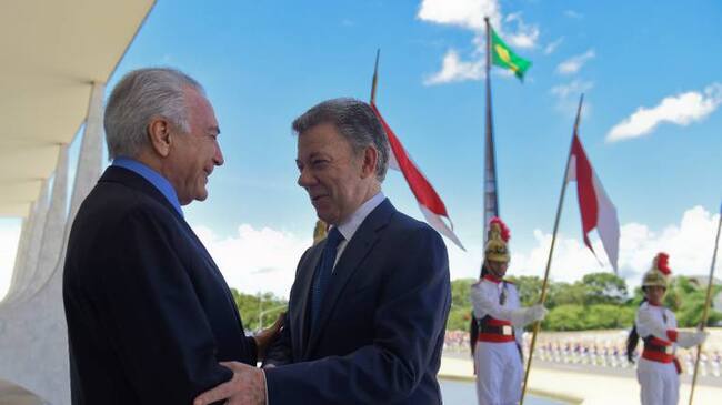 Juan Manuel Santos y Michel Temer.(Presidencia )