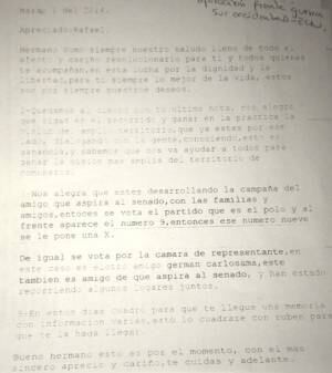 Ahora se conocen parte de esas pruebas que recuperaron los investigadores, entre ellas una carta fechada en 2014 y que comparten dos guerrilleros para dejar en claro la necesidad de votar por el entonces candidato Castilla.