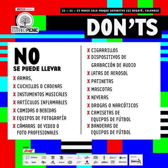 Recuerde cuales son los objetos con los que podrá asistir al evento y cuales no para evitar inconvenientes al momento de ingresar al Parque Deportivo 222
