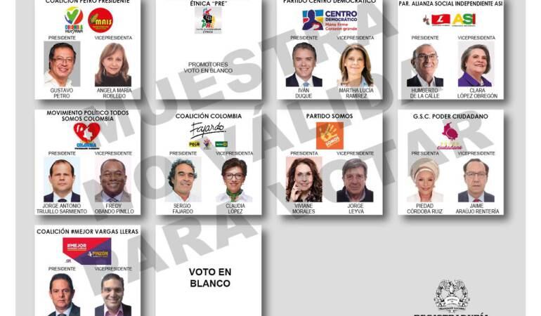 a Registraduría Nacional reveló la ubicación de los candidatos para los comicios presidenciales del proximo 27 de mayo.
