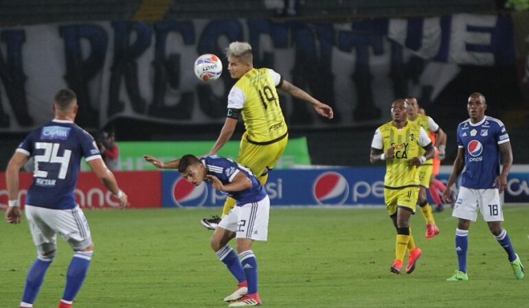 Cristian Huérfano logró marcar para Millonarios hasta los 74 minutos, tras un tiro libre que soltó el arquero Ricardo Jerez.