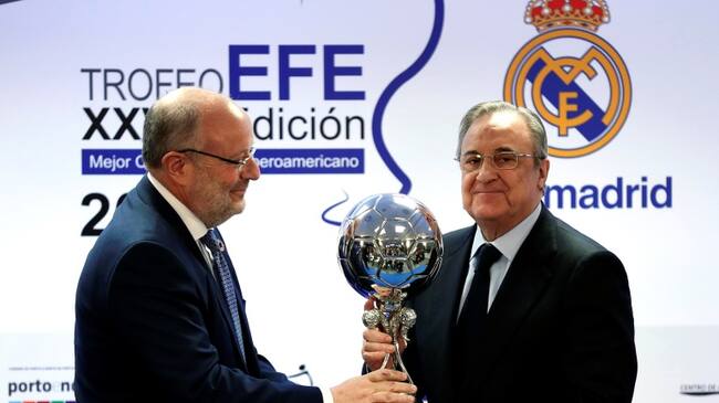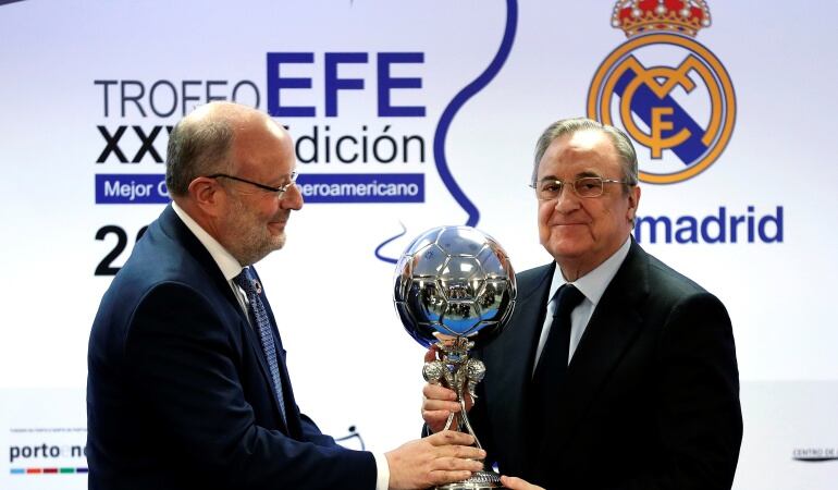 El Real Madrid, a través de su presidente, Florentino Pérez, recibió este viernes el Trofeo EFE al Mejor Club Iberoamericano del año por sus éxitos deportivos y por su labor social.