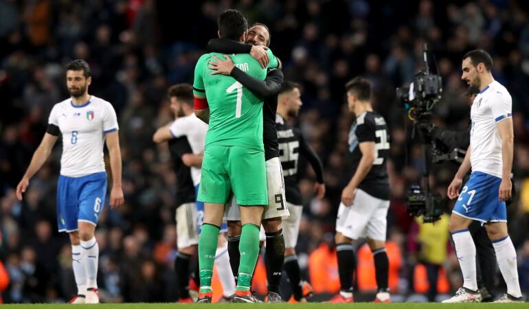 'Gigi' dijo en la previa que no había vuelto a la selección para pasearse. Y de no ser por él su equipo se habría llevado tres o cuatro goles esta noche del Etihad. El veterano portero de la Juventus tuvo trabajo en la primera mitad y sacó manos providenciales a remates de Otamendi, Tagliafico e Higuaín para mantener el 0-0 en el luminoso.