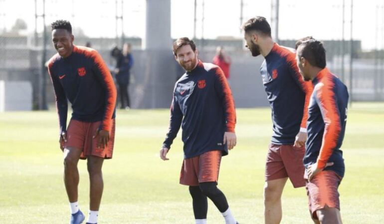 El futbolista colombiano Yerry Mina compartió un entrenamiento con sus compañeros del Barcelona, en el que se jugó al popular 'bobito'.