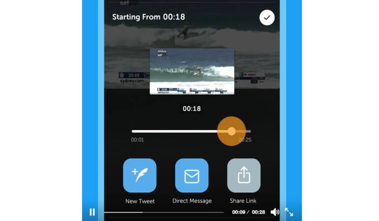 Entonces, en vez darle RT a un video completo, usted puede editar los segundos de video que le interesen, y compartir solo la parte seleccionada en un tuit nuevo.