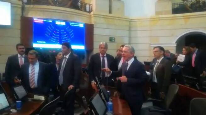 Los senadores Álvaro Uribe y Carlos Fernando Galán tuvieron una fuerte discusión al término de la plenaria de este martes en la que se adelantó un debate sobre los planes de ordenamiento territorial en el departamento de Cundinamarca.