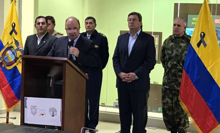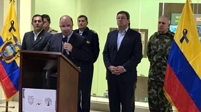 Desde Quito Ecuador, adonde viajó acompañado del comandate de las fuerzas militares, general Alberto Mejía y el general Jorge Nieto, director de la policía, el ministro Luis Carlos Villegas, señaló que desde el medio día de hoy se enviaron a zona de frontera con Ecuador aviones, helicópteros y efectivos de las fuerza armada para ubicar a los responsables del equipo periodístico de el periódico El Comercio.