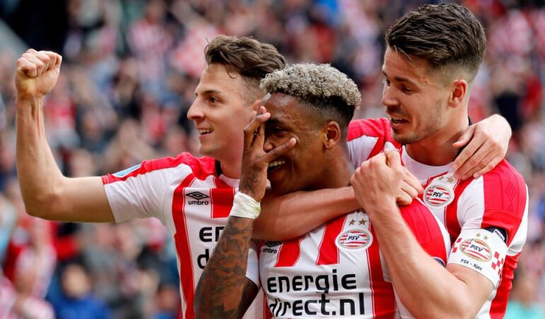 El futbolista colombiano Santiago Arias se coronó campeón de la Liga de Holanda con el PSV Eindhoven después de vencer 3-0 a su clásico rival, el Ajax.