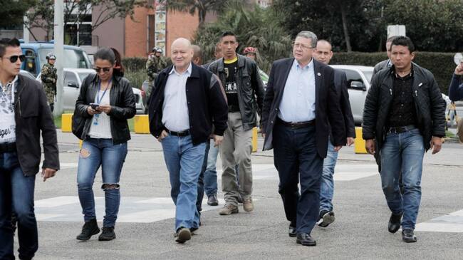 Una delegación del partido político Farc, compuesta por Pablo Catatumbo, Carlos Lozada y Victoria Sandino llegó al búnker de la Fiscalía para visitar a Seusis Pausivas, más conocido como Jesús Santrich y entregarle un mensaje de solidaridad desde la colectividad.