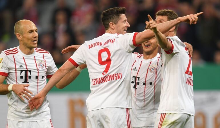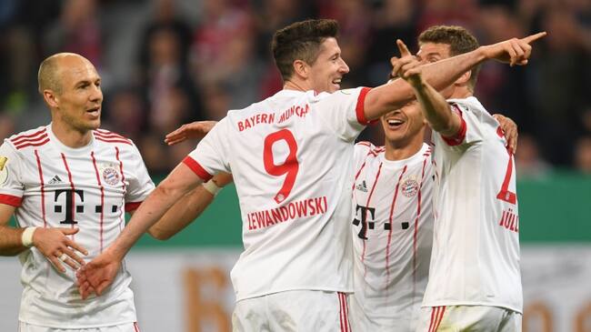 Bayern de Múnich, rival del Real Madrid en semifinales de la Liga de Campeones, goleó hoy a domicilio (2-6) al Bayer Leverkusen y se clasificó para la final de la Copa de Alemania gracias a tres goles de Thomas Müller, dos de Robert Lewandowski y uno de Thiago Alcántara.