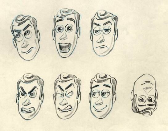 Bocetos de un storyboard de Toy Story, sobre la construcción del personaje de Woody.
