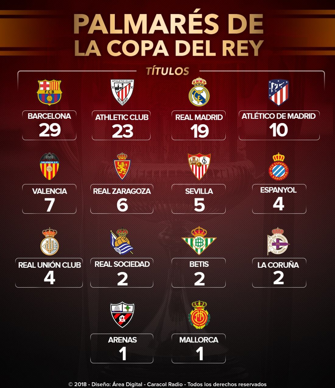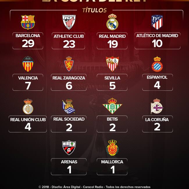 Barcelona lidera el palmarés de la Copa del Rey