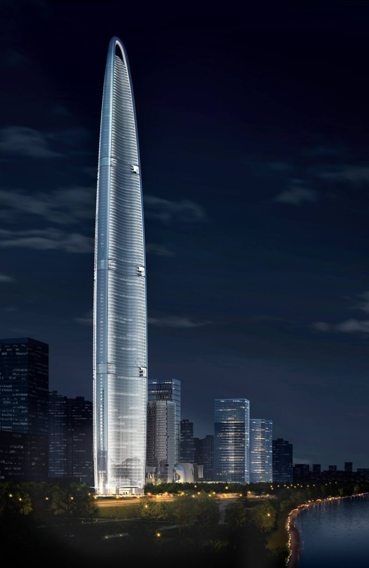 En Wuhan, China se está levantando el Wuhan Greenland Cente. Con un área total de 300,000 metros cuadrados y 119 pisos. La torre tendrá un area de 50,000 metros cuadrados asignados para apartamentos de lujo y condominios, 45,000 para un hotel de cinco estrellas, además contará con un club privado de 5,00 mil metros cuadrados.