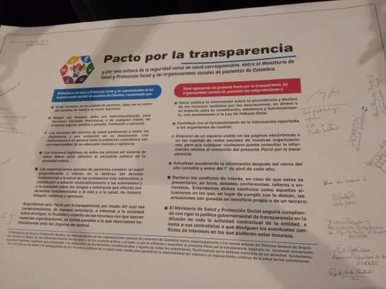 Hoy se firmó el ‘Pacto por la transparencia y por una cultura de la seguridad social en la salud’, entre el Ministerio de Salud y las Organizaciones Sociales de Pacientes de Colombia. Con él, se comprometen de manera voluntaria a informar tanto a la ciudadanía como a órganos de control el origen y manejo de los recursos con que operan las organizaciones.
