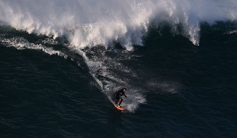 La altura estimado de la ola que el brasileño surfeó es de una altura estimada de 24,38 metros.