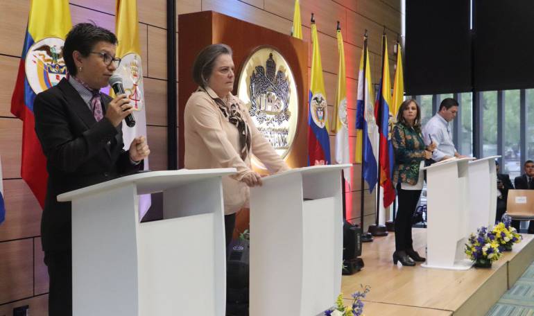 Salud, paz, educación, desigualdad de género y economía, fueron los temas que se abordaron en el auditorio de la Pontificia Universidad Javeriana de Bogotá, en el debate con las fórmulas vicepresidenciales Clara López, Claudia López, Juan Carlos Pinzón y Ángela María Robledo, Marta Lucía Ramírez fue la única candidata que no se presentó.