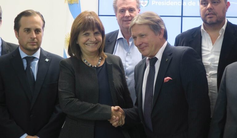 La ministra de Seguridad de Argentina, Patricia Bullrich, y el embajador de Rusia en el país, Víktor Koronelli, firmaron este viernes en Buenos Aires un convenio de colaboración para evitar la presencia de barras bravas del país sudamericano en el Mundial.
