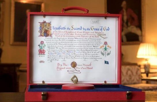 El elaborado documento real en el que la Reina Isabel II da su "consentimiento" a la boda entre su nieto Enrique y la actriz estadounidense Meghan Markle ha sido difundido hoy por el Palacio de Kensington.