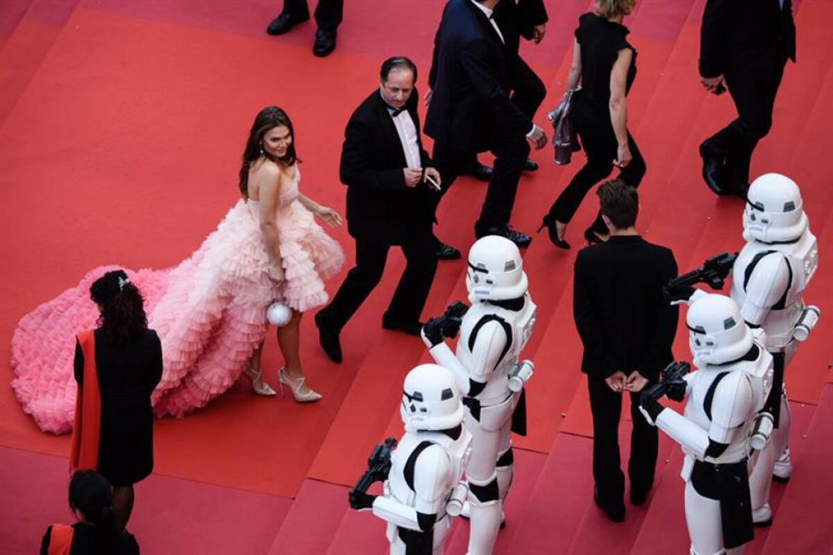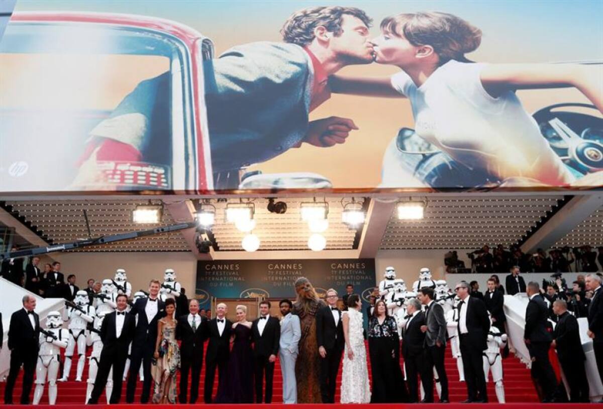 Las modelos e intérpretes que habitualmente desfilan por la fotografiada alfombra que da subida a la sede del certamen quedaron en segundo plano con la aparición de Chewbacca, recibido como el resto por el presidente de Cannes, Pierre Lescure, y su delegado general, Thierry Frémaux.