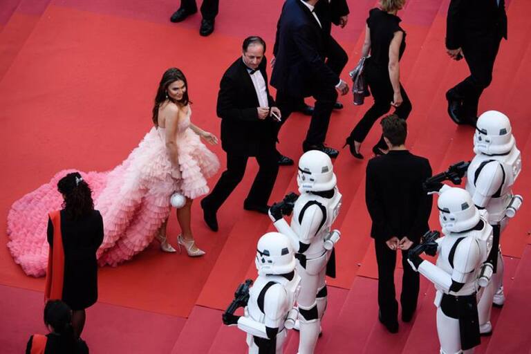 La proyección en Cannes de "Solo: A Star Wars Story", nuevo episodio de la saga que bucea en la juventud de Han Solo, puso hoy la nota de color a la alfombra roja y al propio festival, al que el reparto llegó escoltado por los soldados imperiales.